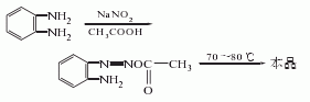 1.由鄰三胺與亞硝酸鈉反應(yīng)而得。將鄰二胺加入50℃水中溶解,再加入冰醋酸,降溫至5℃,加入亞硝酸鈉攪拌反應(yīng)。反應(yīng)物漸漸變成暗綠色,溫度升至70-80℃,溶液變?yōu)榻奂t色,于室溫放置2h,冷卻,濾出結(jié)晶,用冰水洗滌,干燥得粗品,將粗品減壓蒸餾,收集201-204℃(2.0kPa)的餾分,再用重結(jié)晶,可得熔點(diǎn)為96-97℃的產(chǎn)品,產(chǎn)率80%左右。曾有報(bào)道用亞硝酸鈉處理多菌靈的縮合廢水而得副產(chǎn)物并三氮唑。